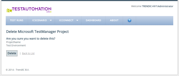 Click Back to list to return to the Microsoft TestManager Projects page, without removing the ProjectName.
