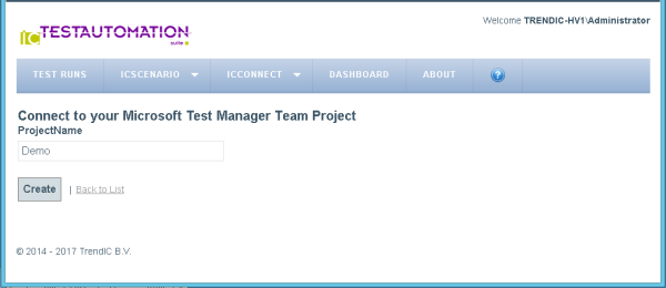 Click Back to List to return to the Microsoft Test Manager Projects page.